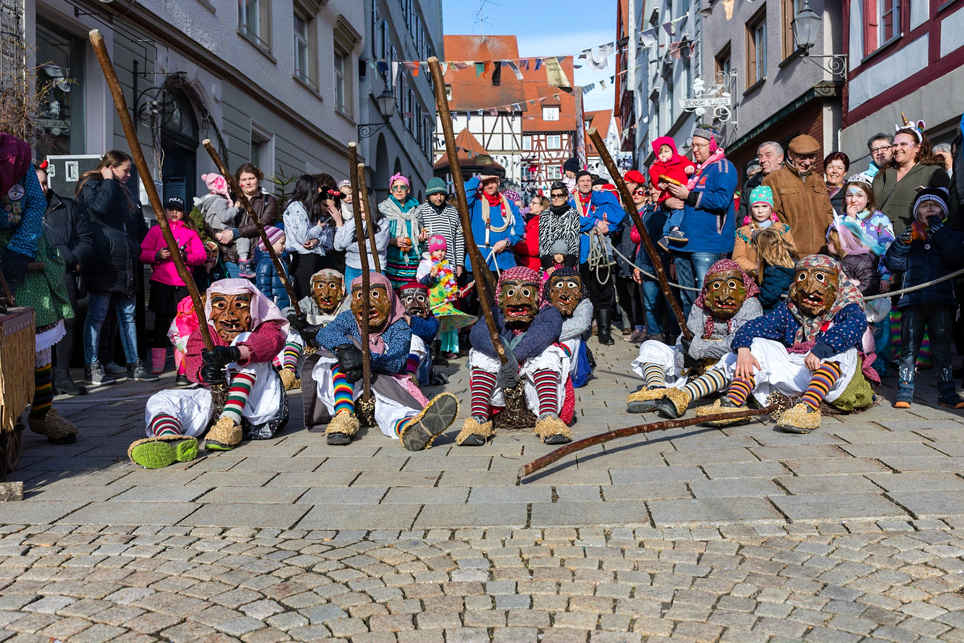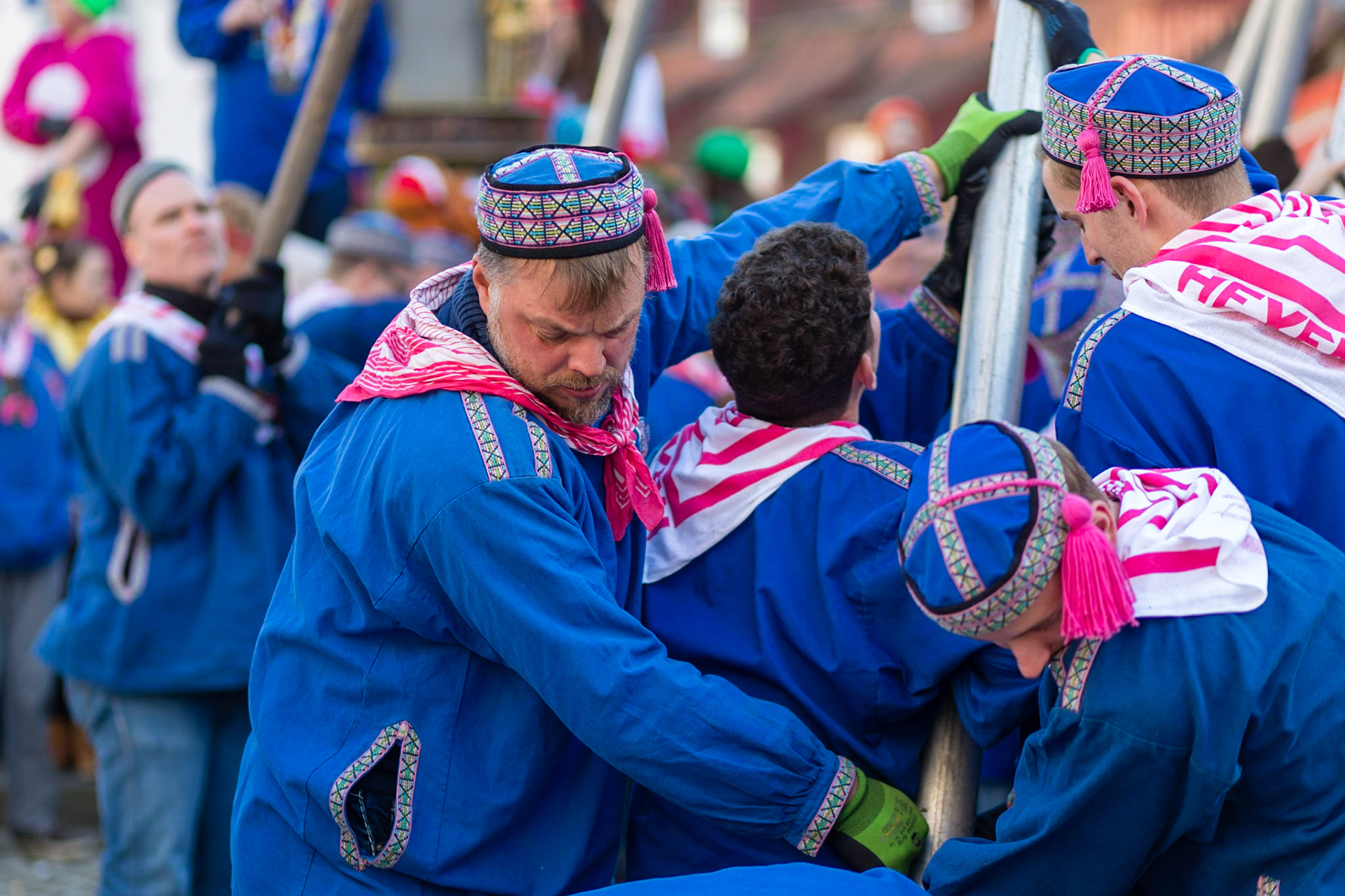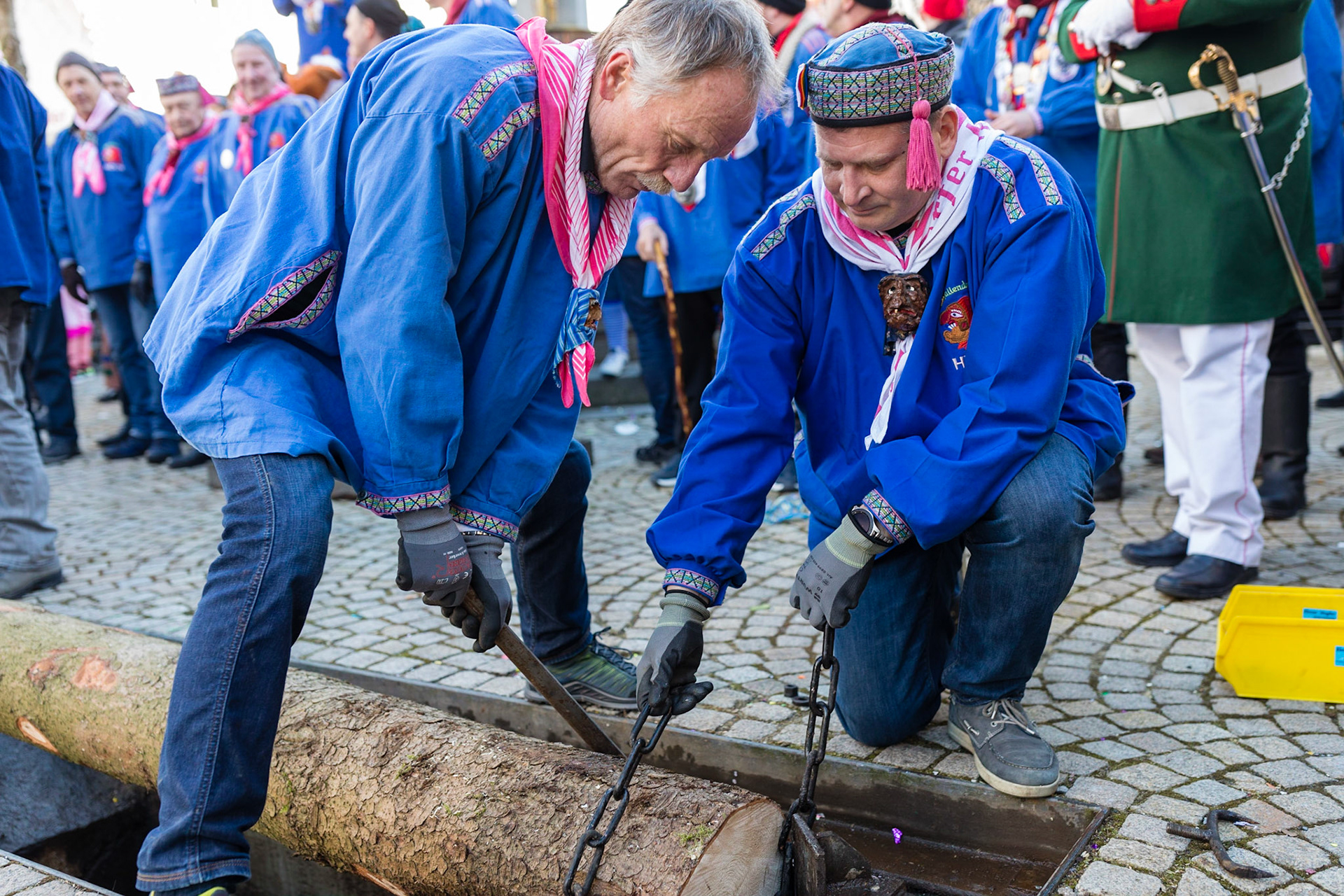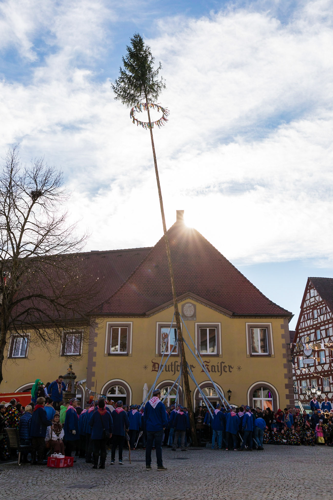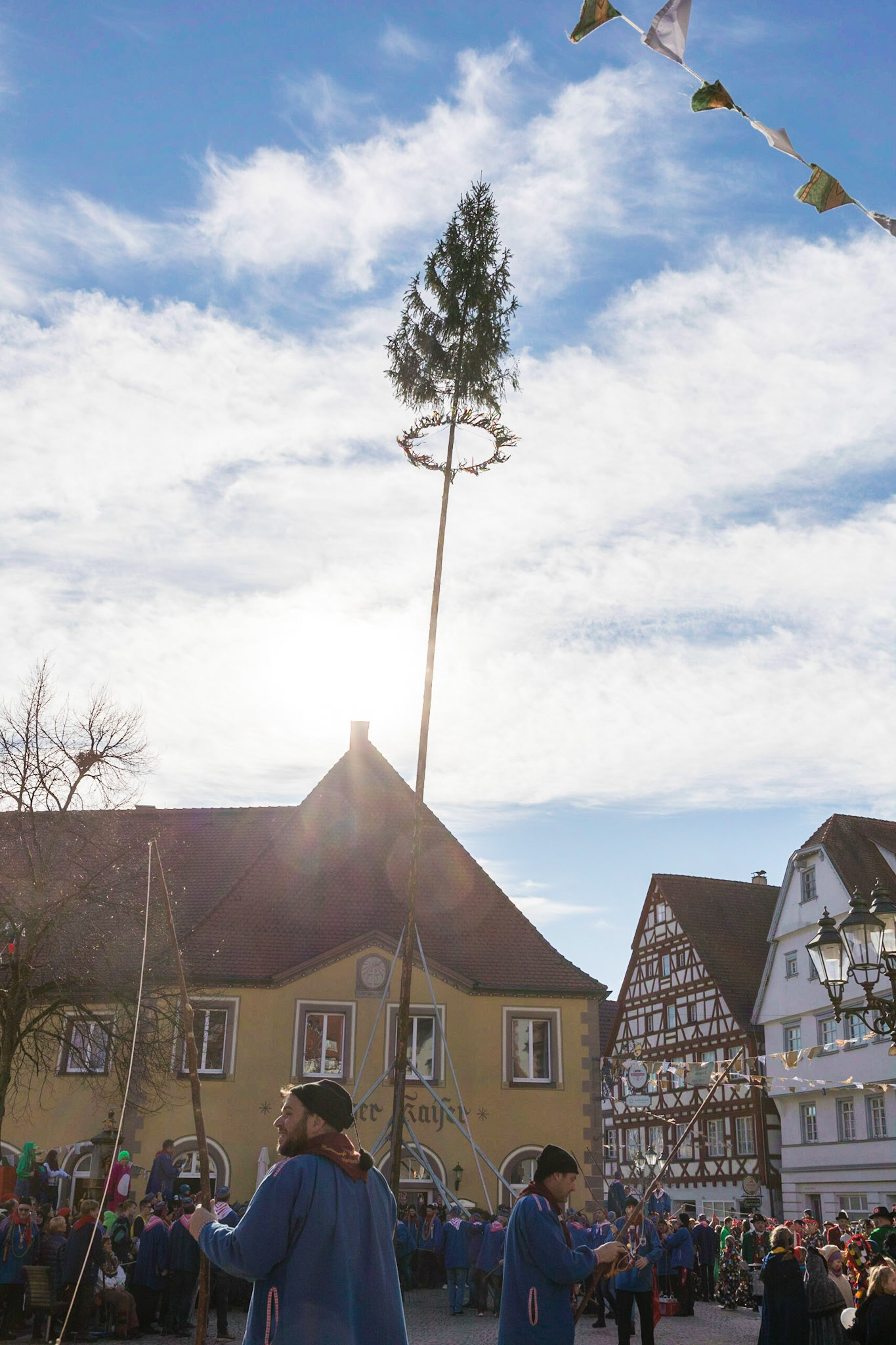 Der Narrenbaum wird traditionell am Schmotzigen Dunschtig von der Hexenguppe ausschließlich durch Manneskraft aufgestellt. So ist es in der Schwäbisch Alemannischen Fasnet der Brauch. (Zitat Stegstreckerzunft)